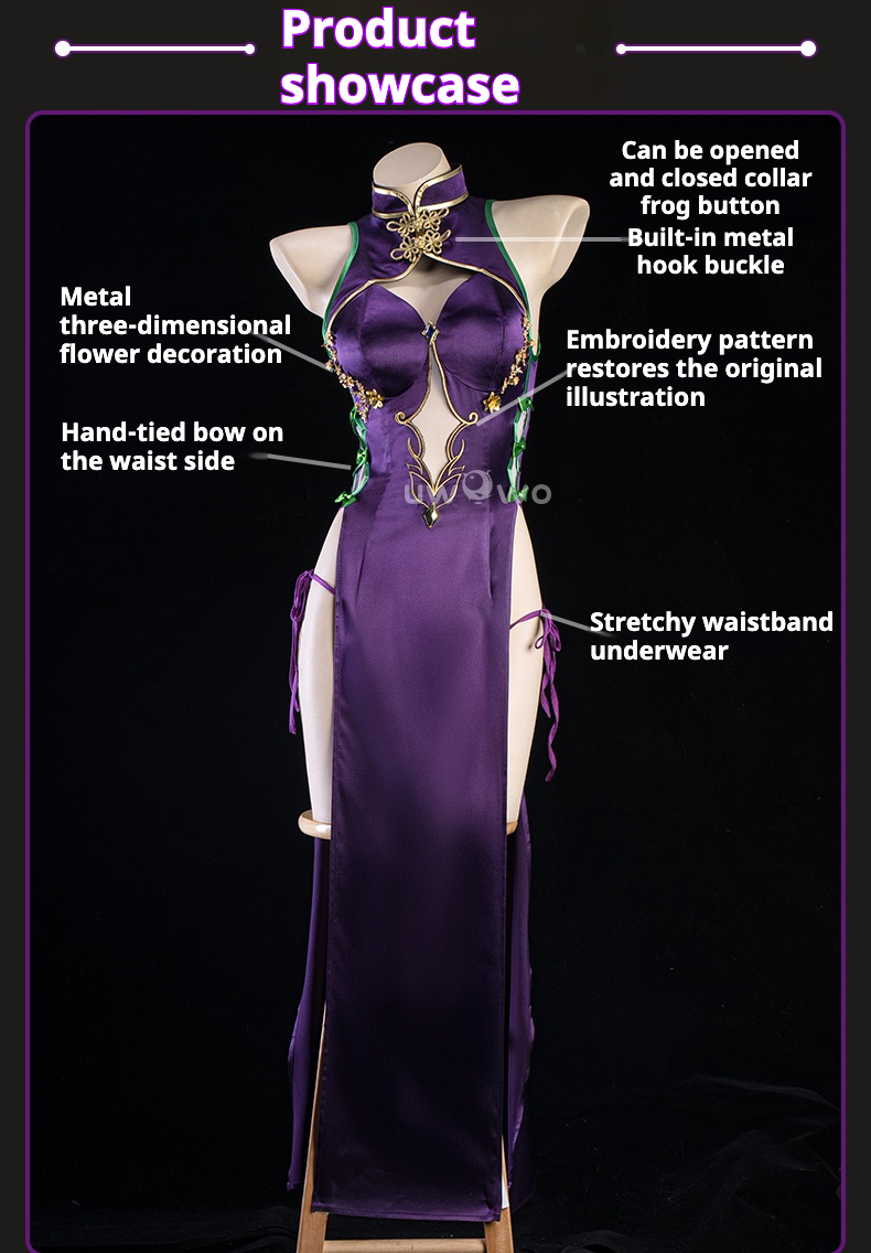 C.C. Cosplay Costume – Code Geass Purple Cheongsam Dress for Women