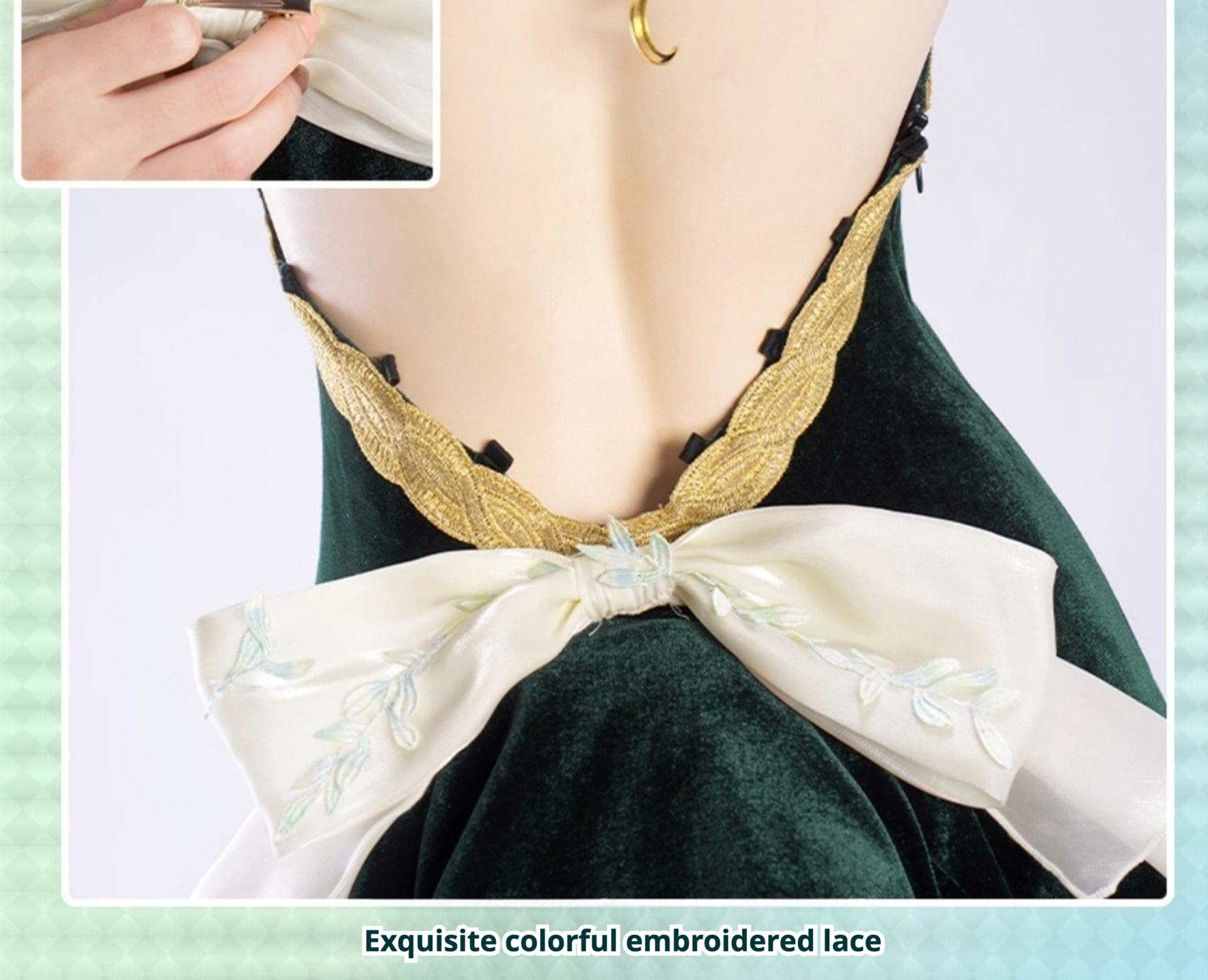 Light green star pleats , Inherent vertical striped texture, Perfectly matched skirt, The color is soft and gentle