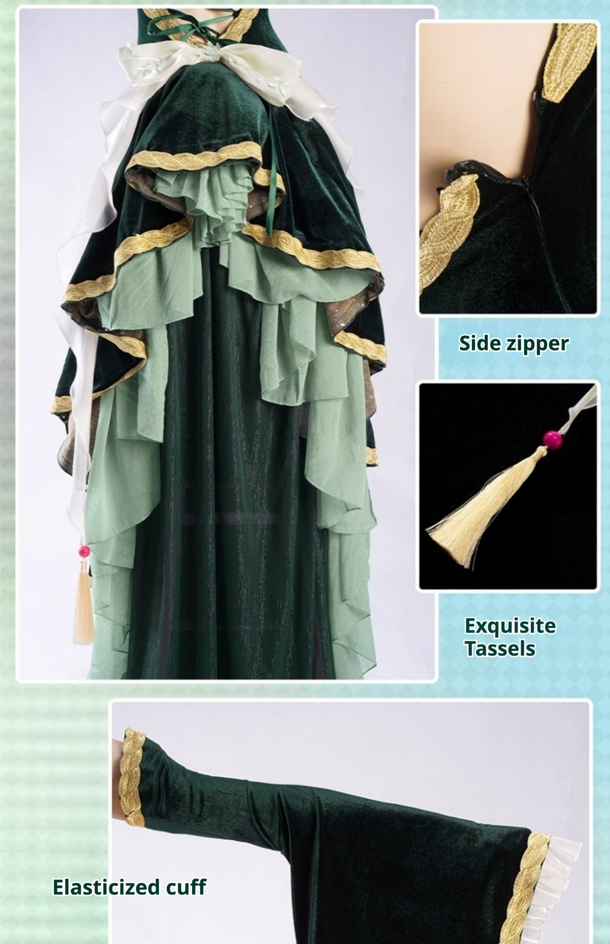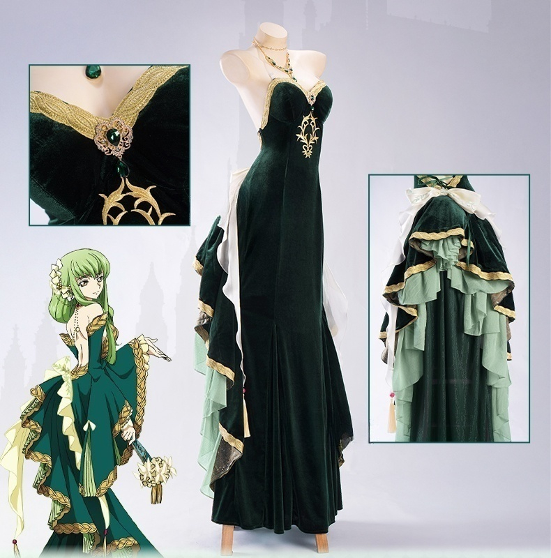 Code Geass C.C. Cosplay – Court Style Dark Green Gown for Women