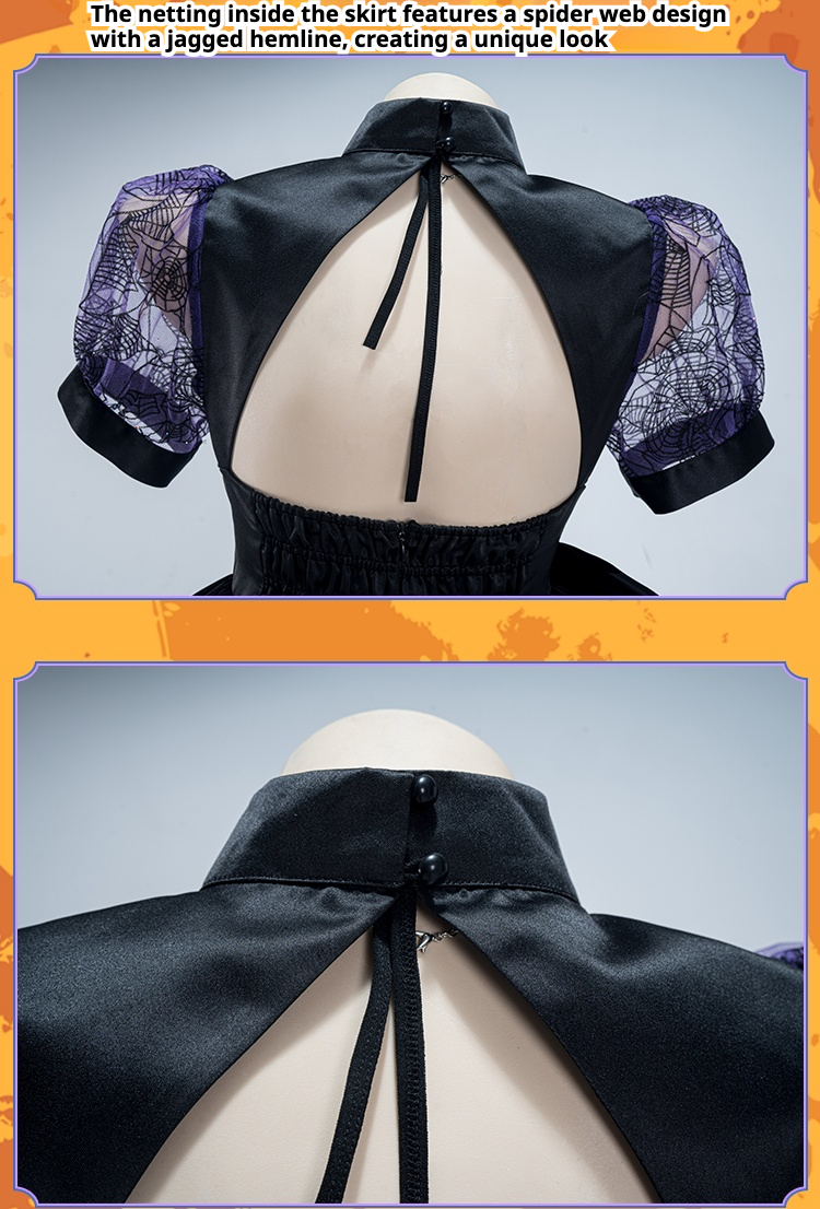 The netting inside the skirt features a spider web design with a jagged hemline, creating a unique look