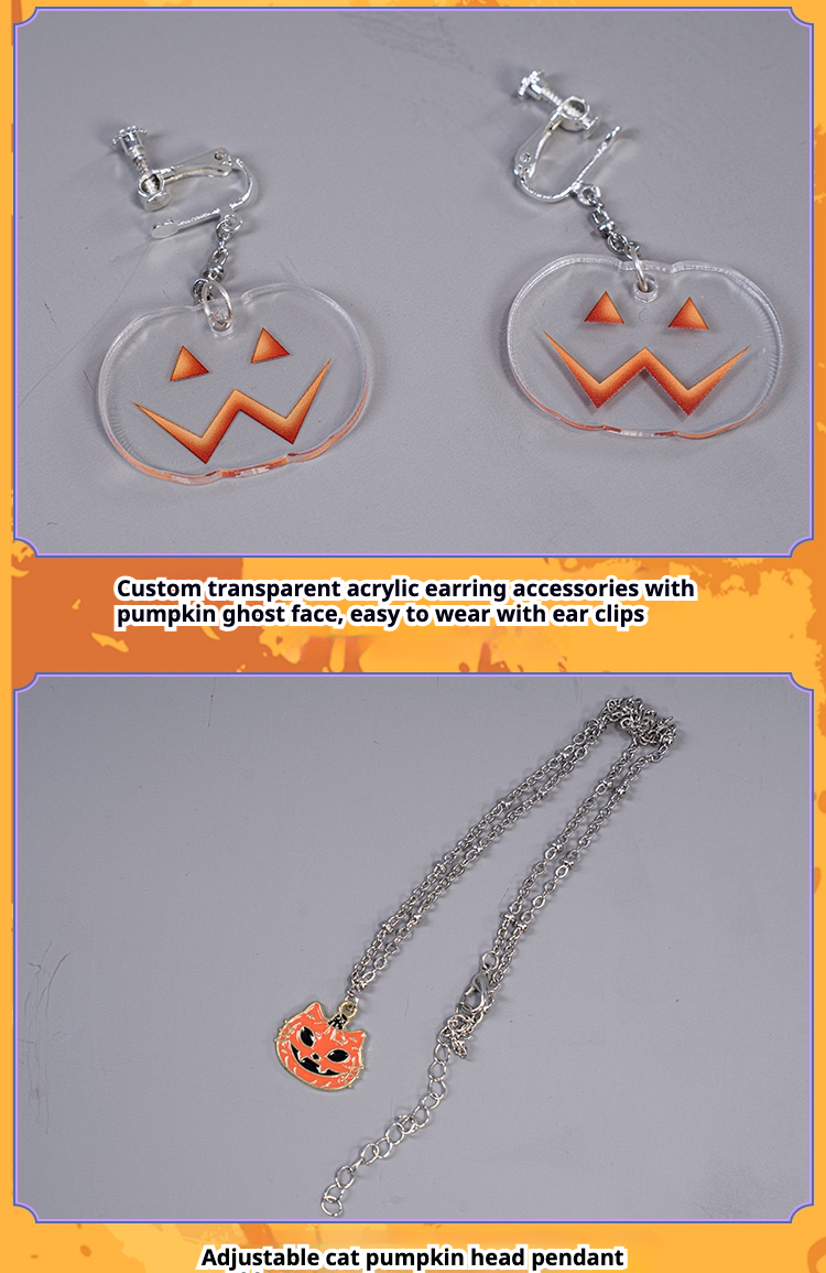 Custom transparent acrylic earring accessories with pumpkin ghost face, easy to wear with ear clips