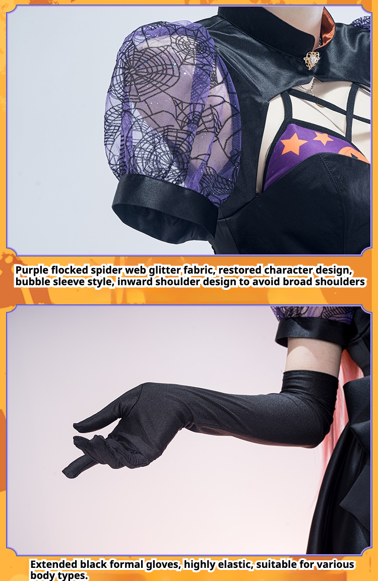 Purple flocked spider web glitter fabric, restored character design, bubble sleeve style, inward shoulder design to avoid broad shoulders